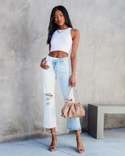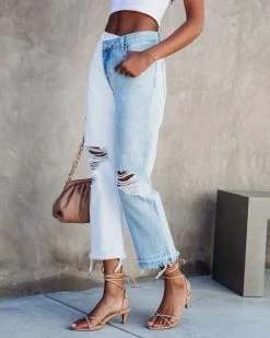 Cool meets unique in the Wrenley High Rise Cross Over Two-Tone Straight Jeans in white and denim that features a relaxed fit.