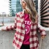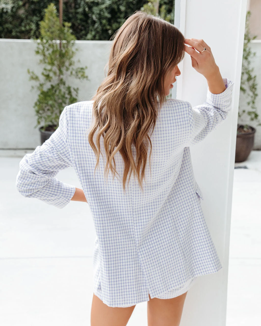 Chic meets sophisticated in the Chanelle Plaid Pocketed Blazer in lavender that features a notched collar.