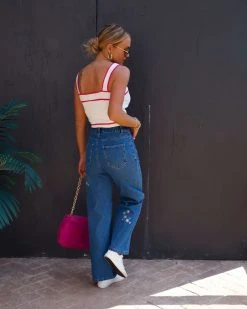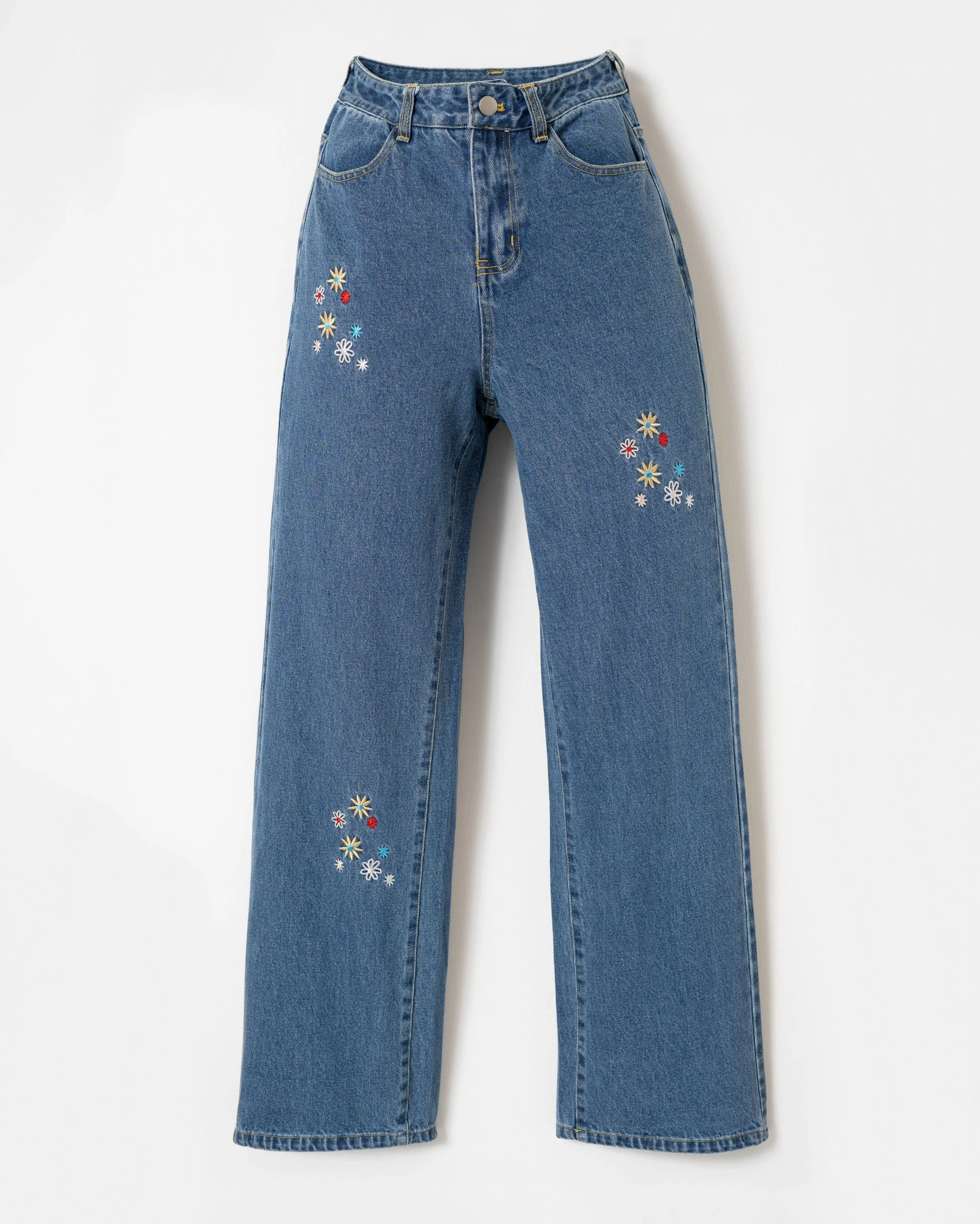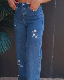 Major retro vibes in the Rave About It High Waisted Floral Embroidered Jeans in dark wash that feature a relaxed fit.