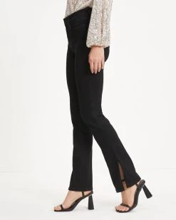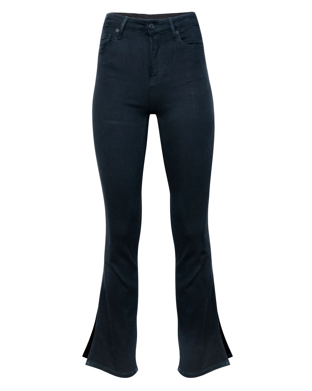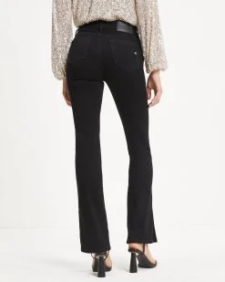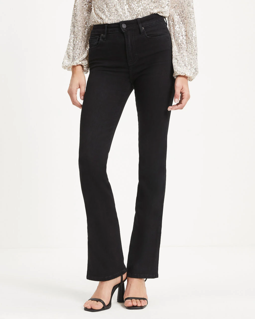 Cute for everyday, the Eliza High Rise Stretch Bootcut Split Hem Jeans in black feature a bootcut.