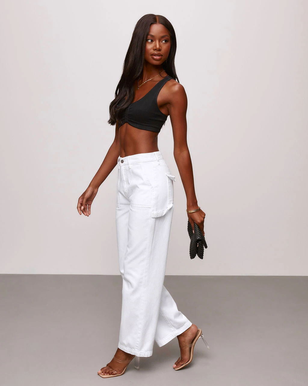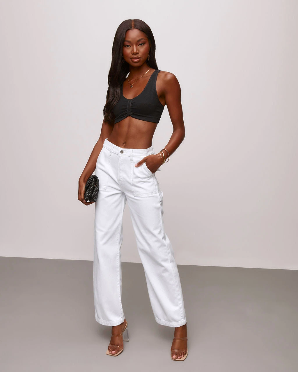 - Size 31: Length measures 45.5” from waist to hem with a 12.5” rise, 31” inseam and 33” waist