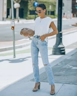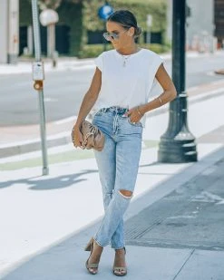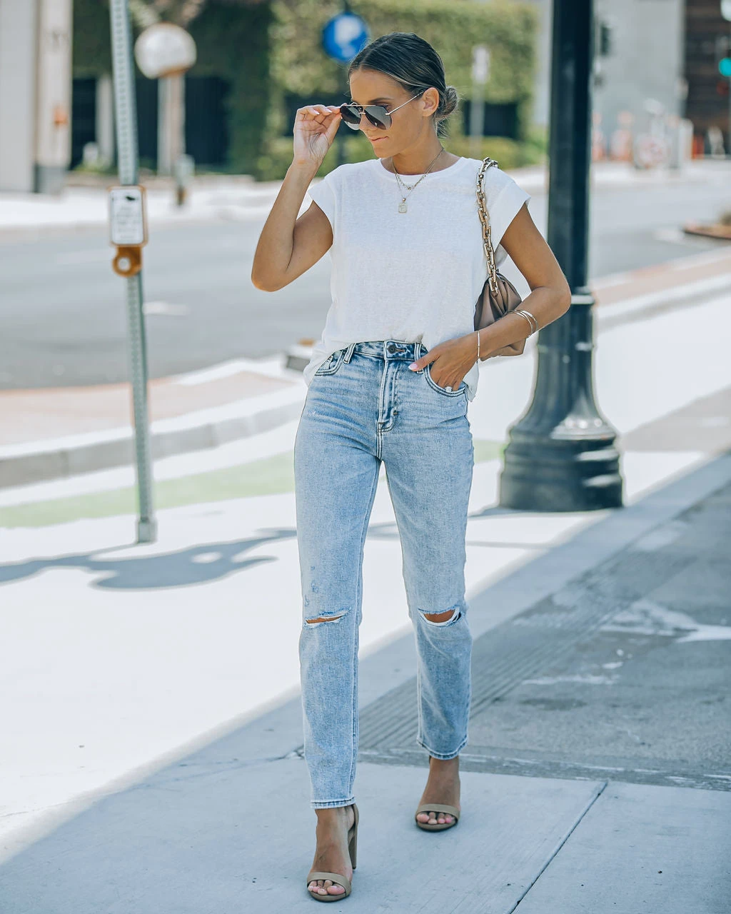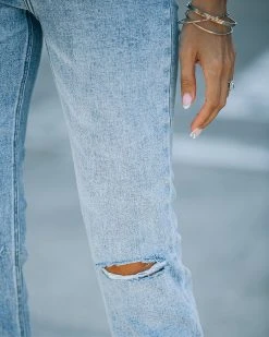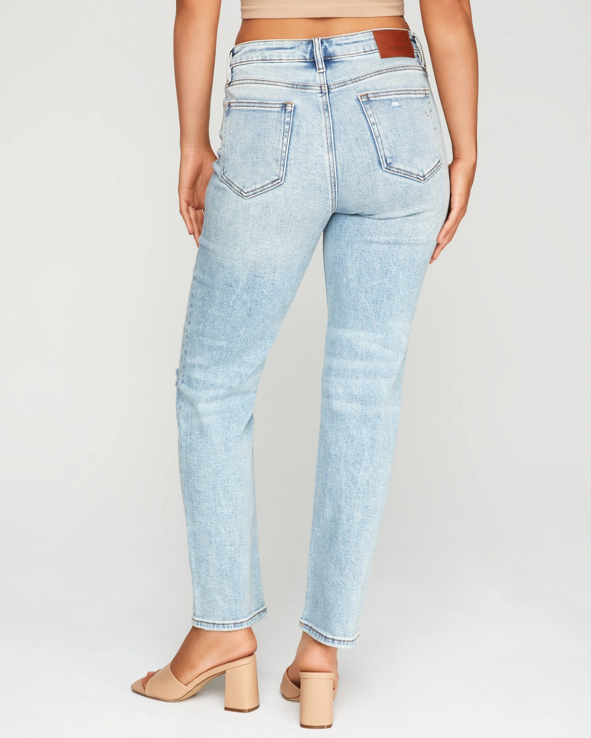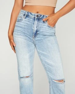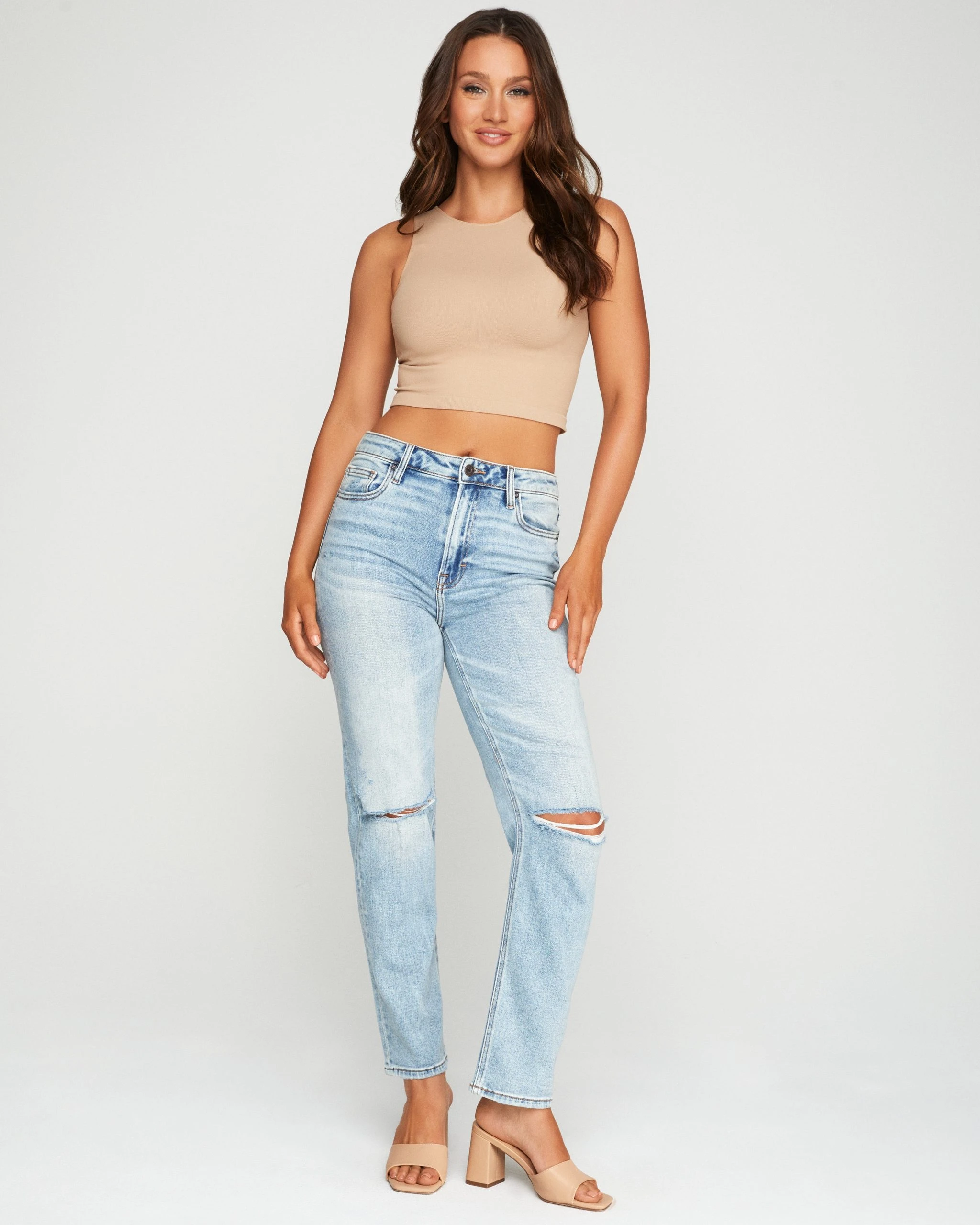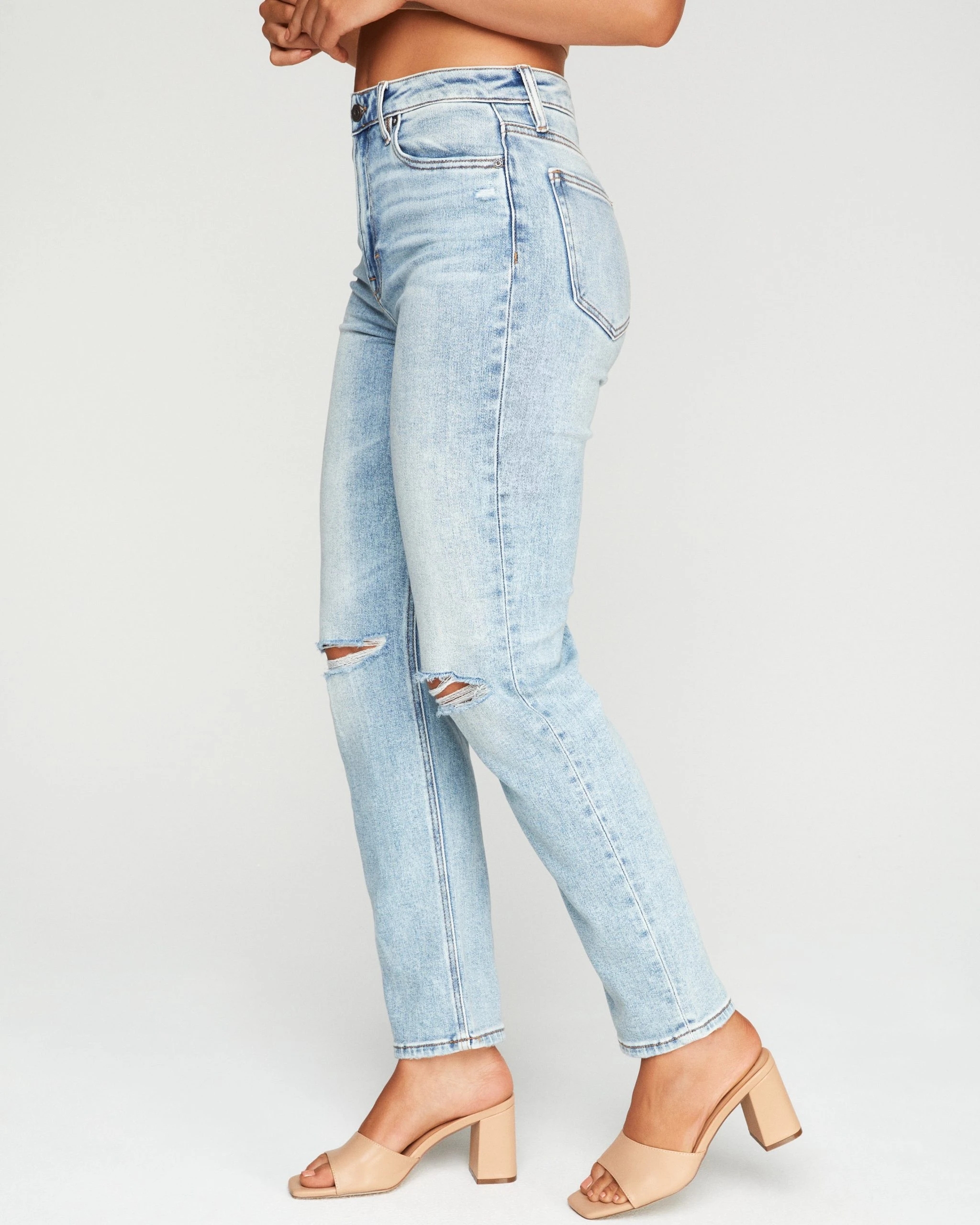 Trendy and classic, the Morgan High Rise Mom Jean in light wash feature light distressing and a high rise.