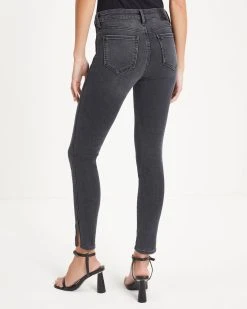 Fitted meets flattering in the Reno Mid Rise Stretch Skinny Jeans in charcoal that feature front button closures.