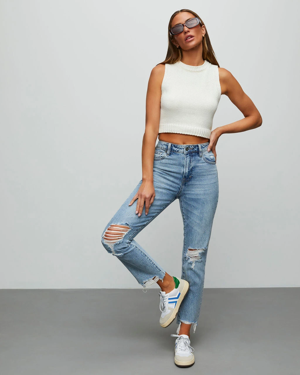 Model is Wearing a Size 25. Height is 5’7″, Bust is 32”, Waist 25”, and Hips 30” Â