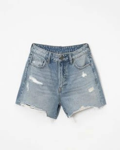 Do the denim thing with the Stassi High Rise Distressed Mom Jean Shorts.