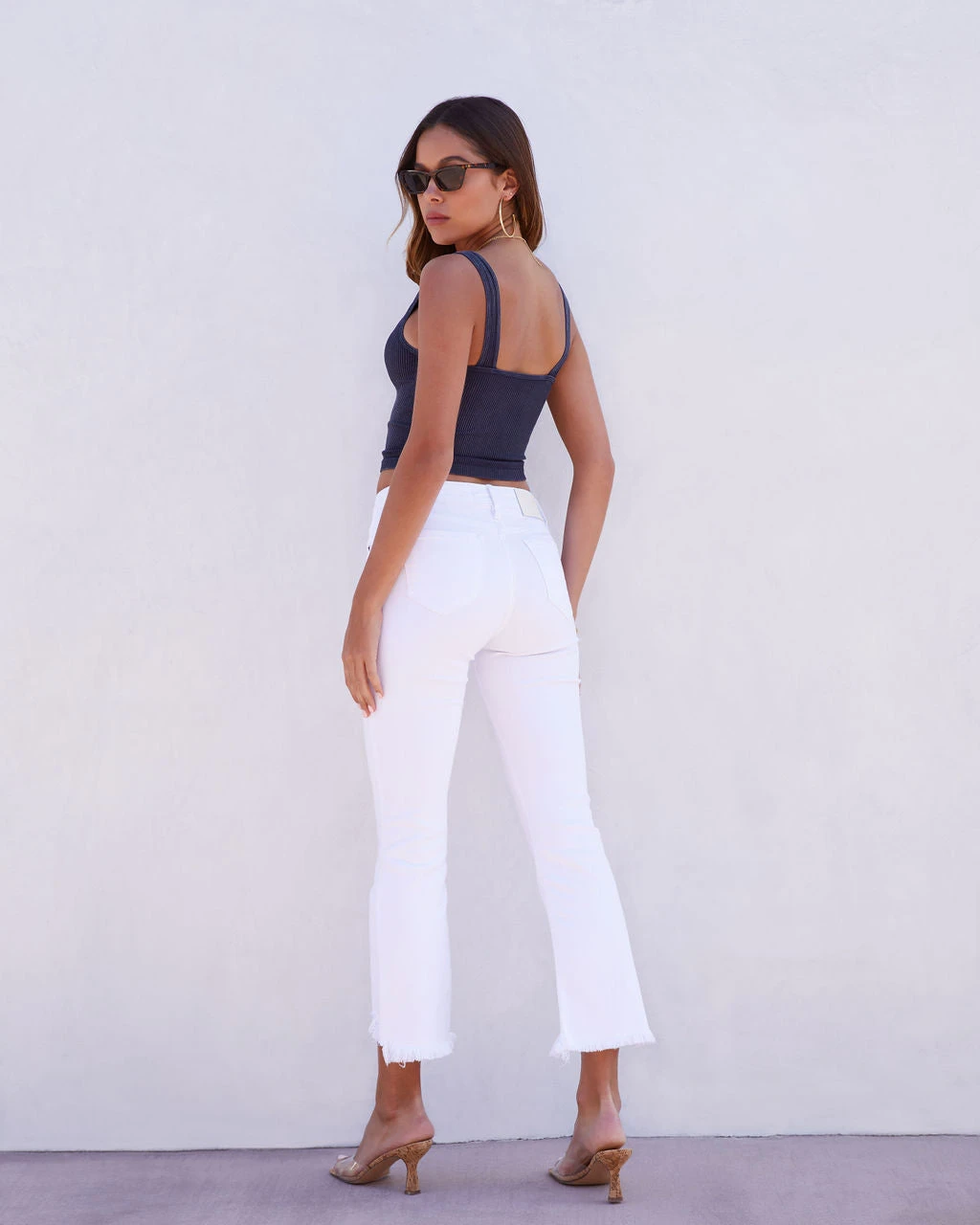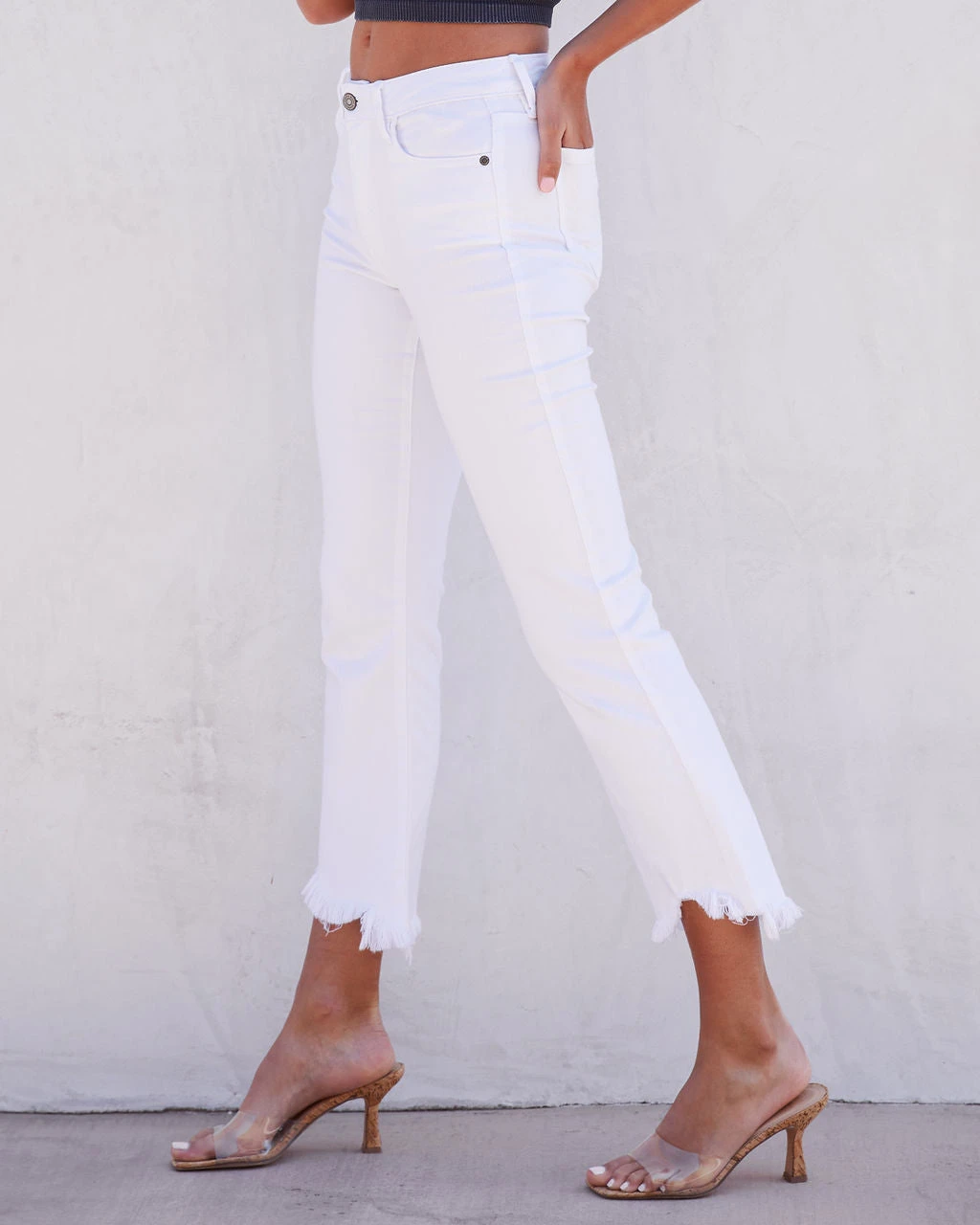Model is Wearing a Size 25. Height is 5’7″, Bust is 32”, Waist 25”, and Hips 30”