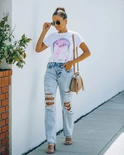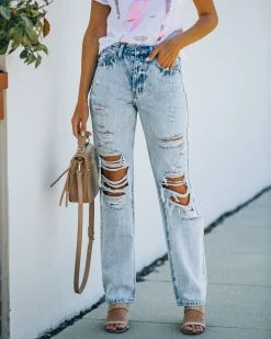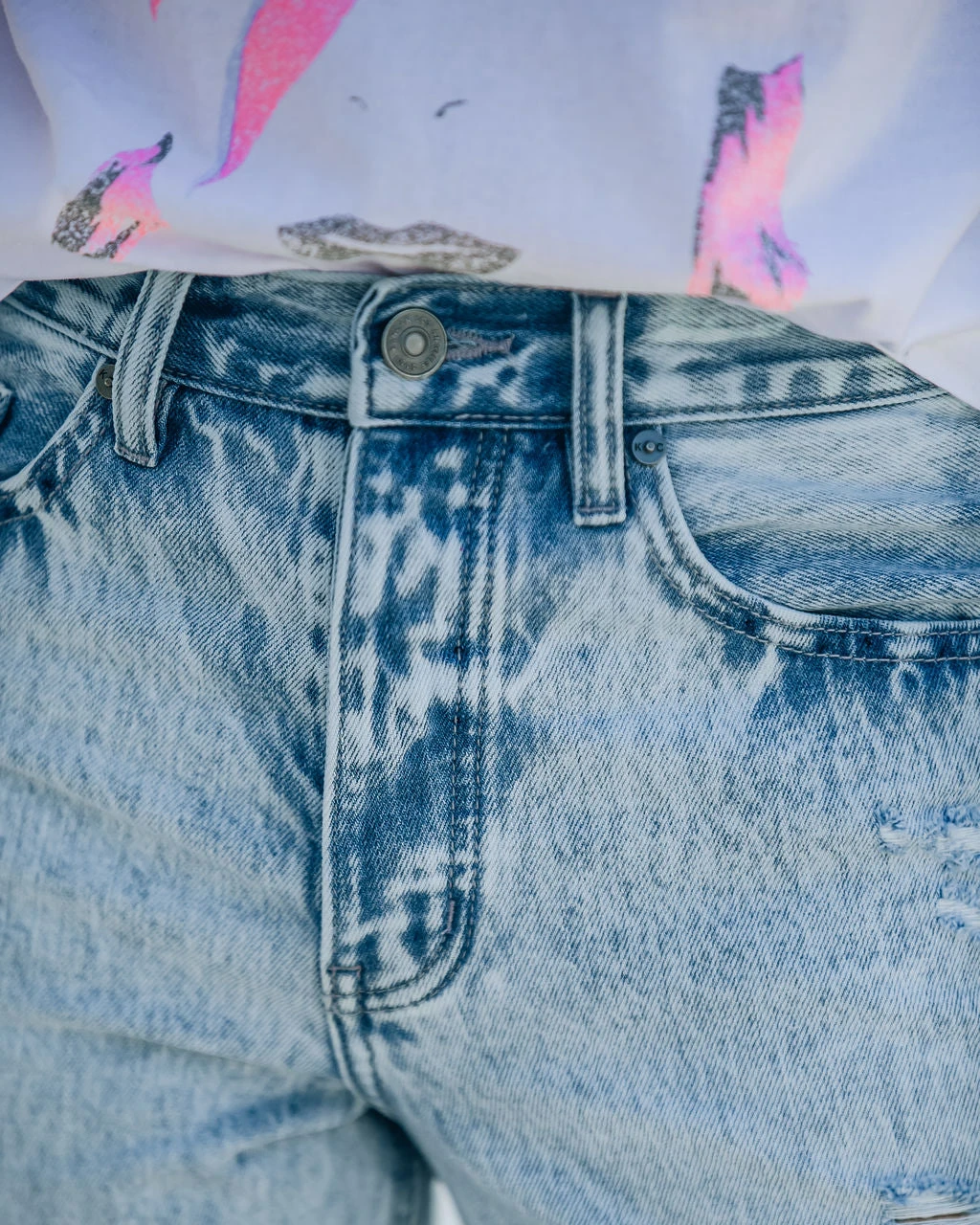 //Kancan Denim// Our Bass High Rise 90’s Acid Wash Distressed Denim are such a cool vibe! These light acid wash jeans have no stretch and are heavy distressing. Finished with a straight leg and front button closures. Styled with the Daya Links Choker, Chloe Mini Necklace, The Buddha Wheel Necklace, Mini Highland Bag, Tour With Bowie Cotton Distressed Tee, and Whitley Faux Suede Square Toe Heeled Sandal.