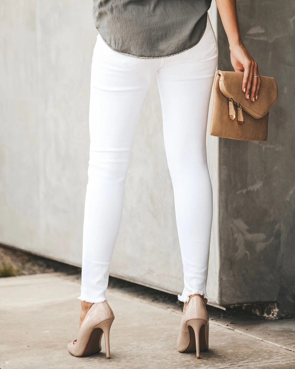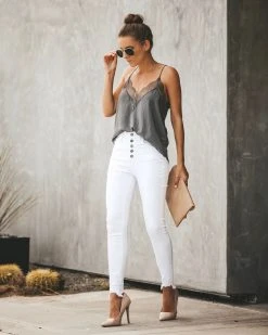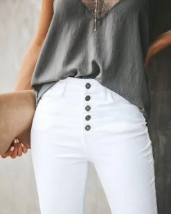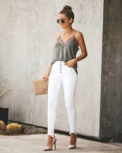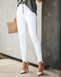 //Best Seller// Update your skinnies just in time for Spring with our Blaine High Rise Skinny! Don’t be afraid to make a statement and rock this white denim! Featuring a high rise fit, classic 5 pocket design and distressed frayed ankles.