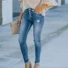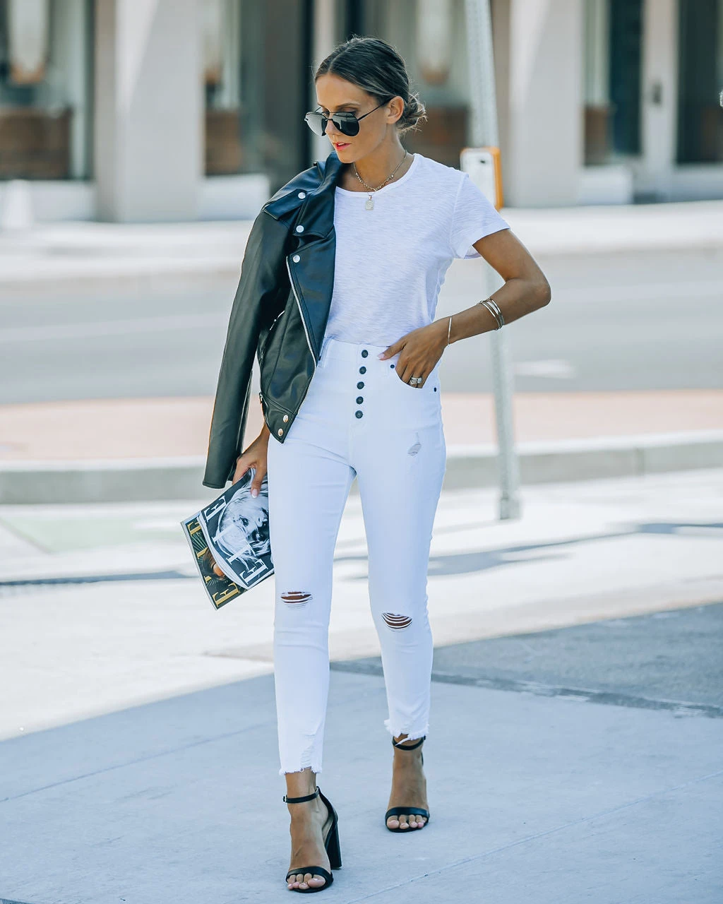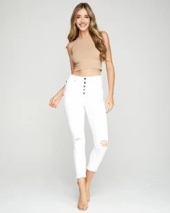 Our Charli Frayed Ankle High Waisted Skinny features a stretchy white denim, high rise and a skinny ankle length cut. Constructed with a feminine + contoured “like a glove” fit.