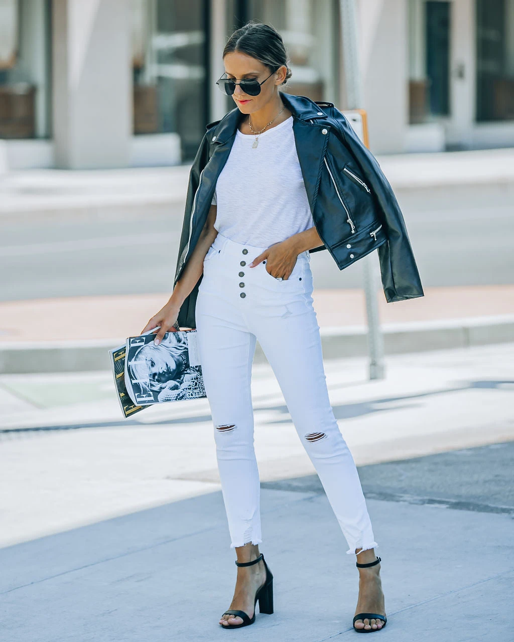 Styled with: Initial Card Necklace, Tally Tee, Gramercy Jacket, and Whimsy Heel.