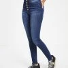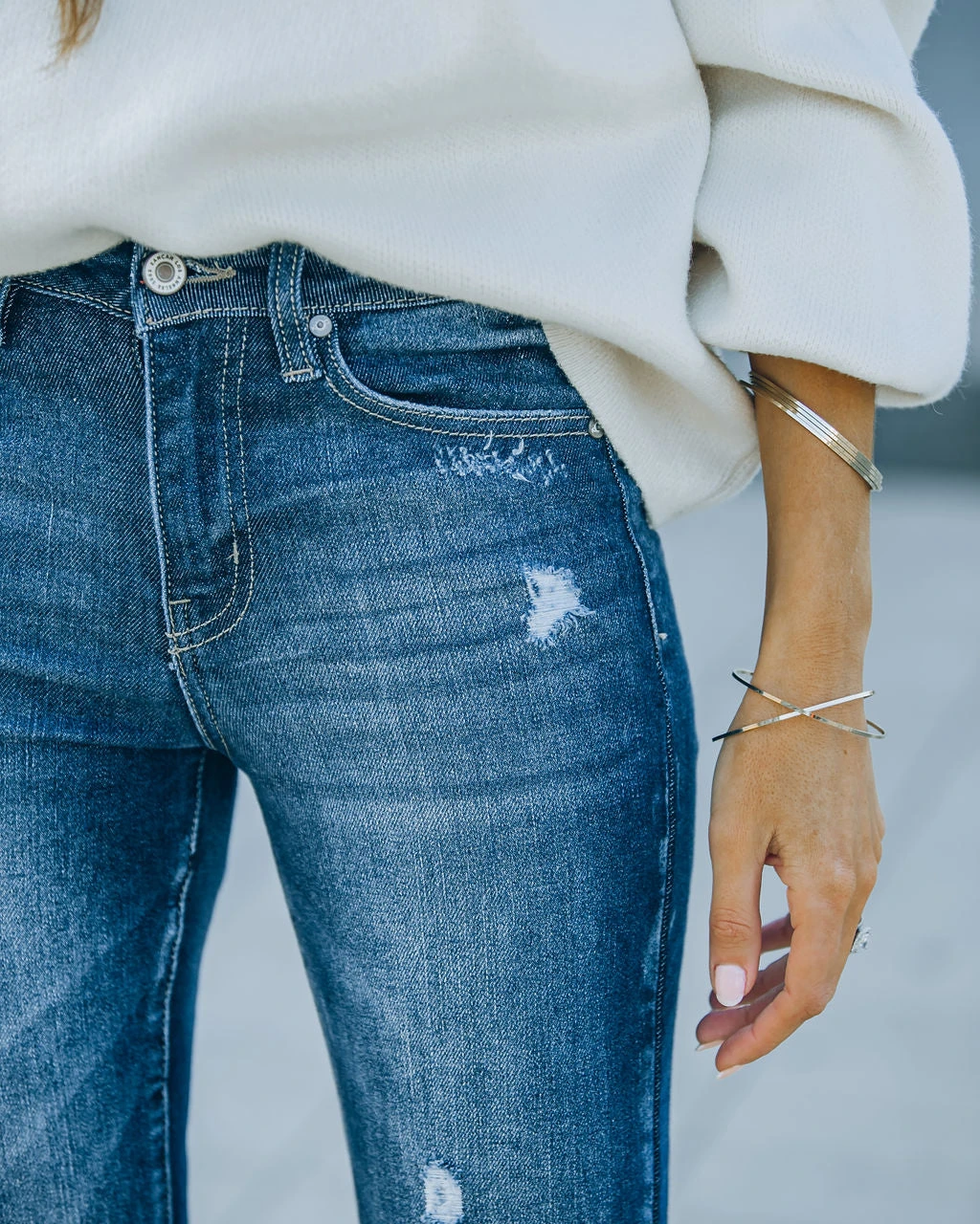 Our Hendrix High Rise Bell Bottom Denim pair best with chunky sweaters! These dark wash jeans feature a high rise fit. Designed with a stretch and a light distressing. Finished with a front zipper and button closure. Styled with the El Dorado Hat, Simple Bangle Bracelet, Highland Bag, Amsterdam Mock Neck Sweater, and Ritz Faux Suede Pointed Heel.