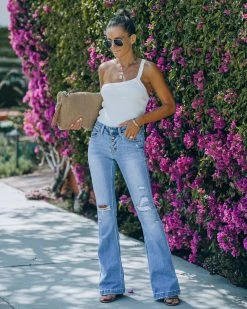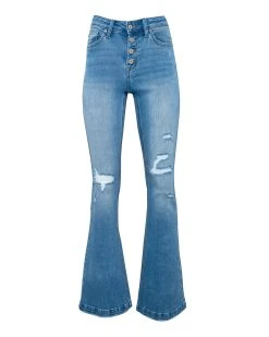 So trendy are the Kaplan Mid Rise Button Front Flare in dark wash that feature a flare leg and a classic 5 pockets.