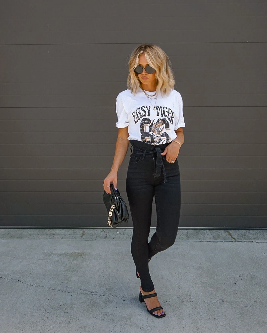 Styled with: Initial Card Necklace, Minimal Herringbone Necklace, Chic Bag, Thirst For Adventure Tee, and Whimsy Heel.