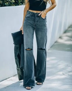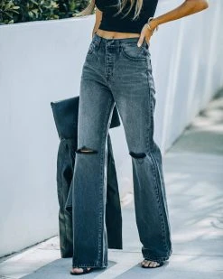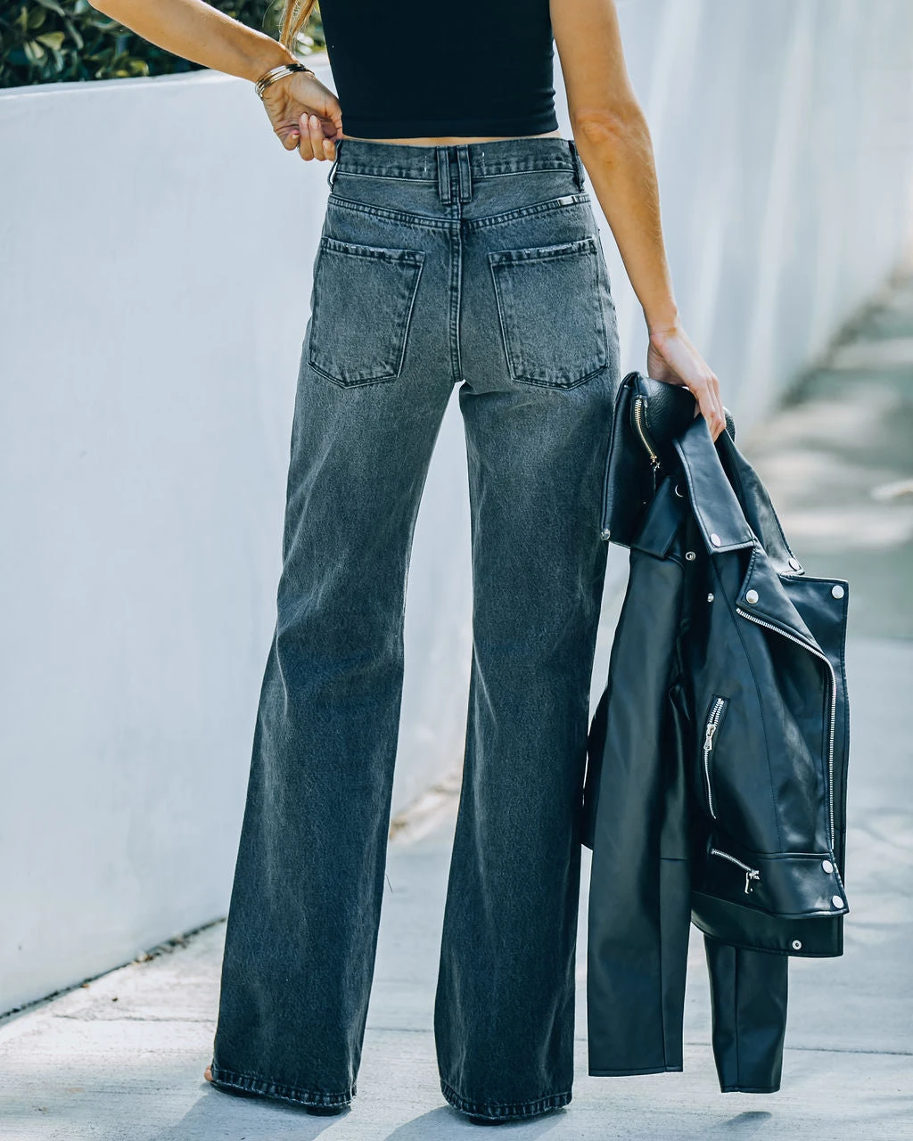 //Best Selling Silhouette// Our Tayden High Rise Distressed 90’s Flare Denim give off a cool-girl edge! These grey high rise pants feature knee distressing details. Designed with no stretch and 5 pockets. Styled with the Lenox Black Frame Grey Gradient Aviator Sunglasses, Simple Bangle Bracelet, Compass Coin Necklace, Minimal Herringbone Necklace, Stella Crossbody Envelope Zip Clutch, Kiki Knit Crop Top, Gramercy Pocketed Faux Leather Moto Jacket, and Whimsy Heel.