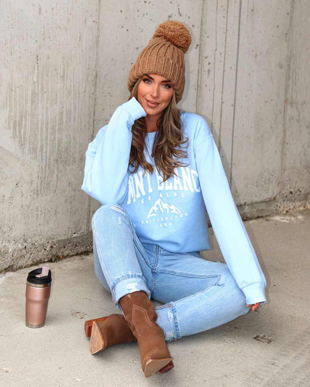 Head to the mountains in the Mont Blanc Switzerland Sweatshirt in blue that features a crew neckline.