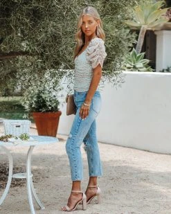 Our Faythe Floral Ruched Crop Top delivers such femme vibes! This light blue, ivory, blush, and coral crop top features a v-neckline and puff sleeves. The front is designed with ruching details while the back is smocked. Styled with the Indigo Twisted Hoops, Chloe Mini Necklace, Simple Bangle Bracelet, Compass Coin Necklace, Elena Pendant Necklace, Stella Crossbody Envelope Zip Clutch, Kason Distressed High Rise Denim, and Whimsy Heel.