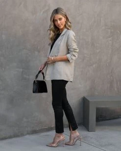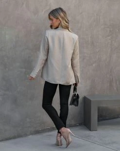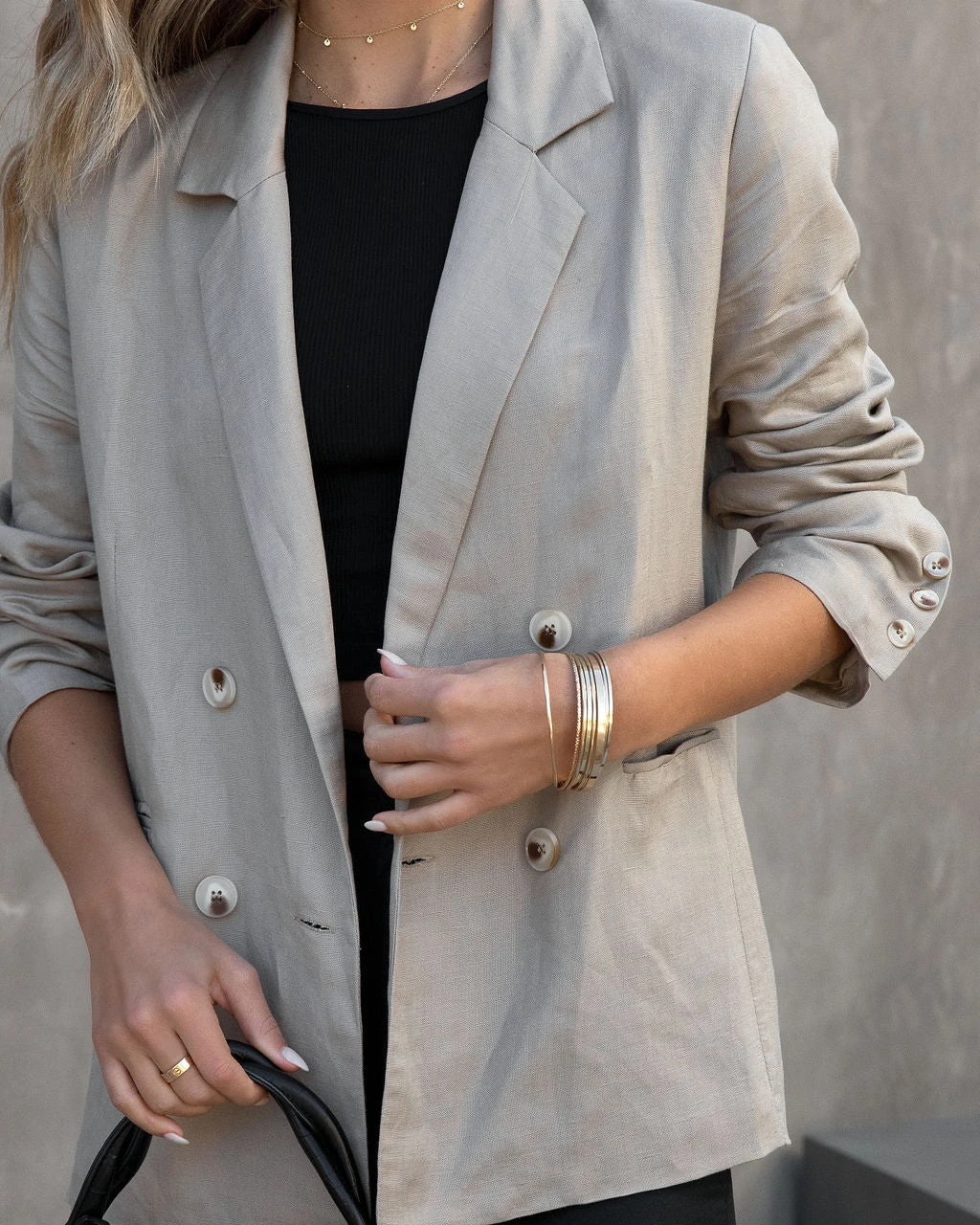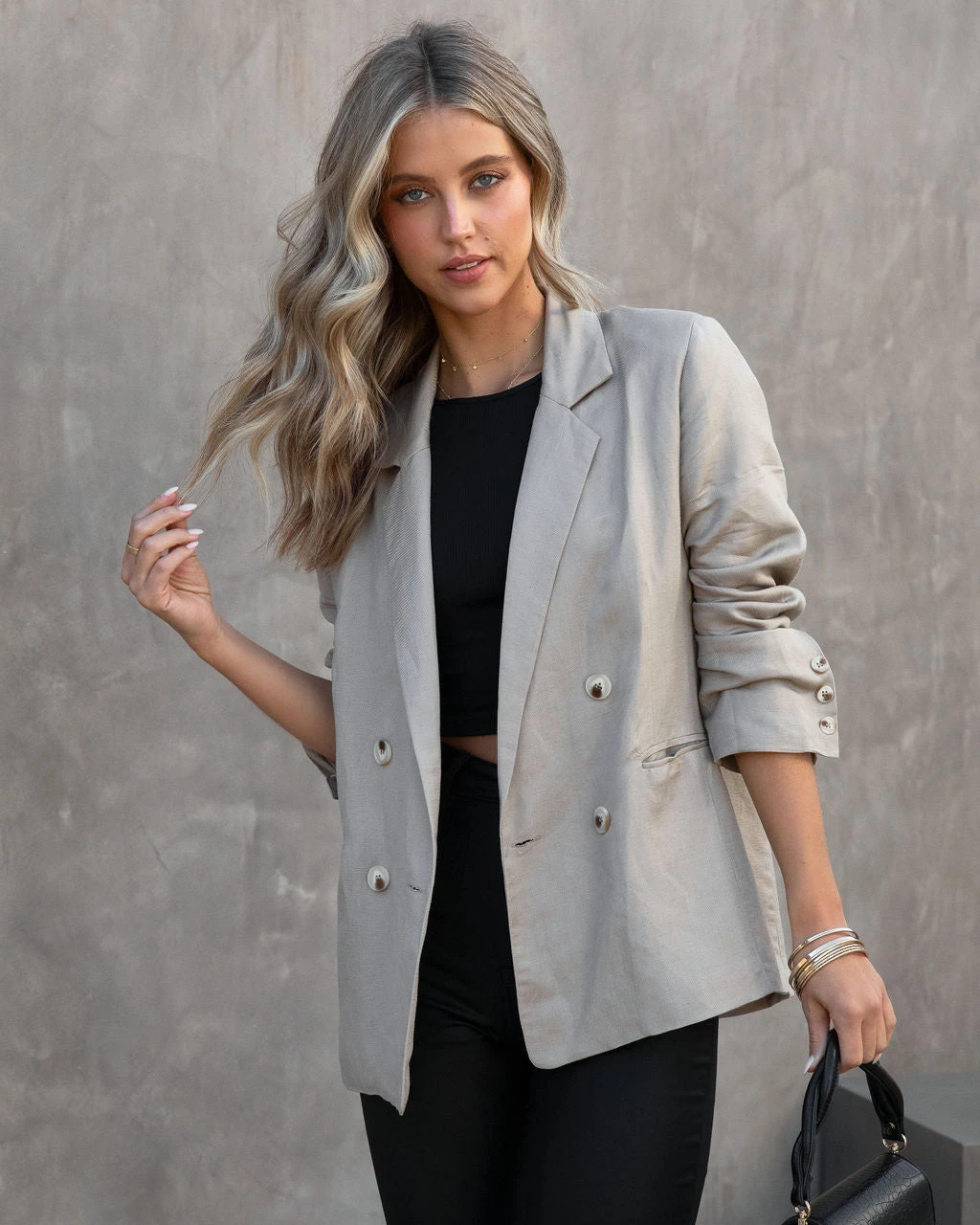 Exude boss babe energy in the Bennett Pocketed Linen Blend Blazer in mocha that features padded shoulders.  Â