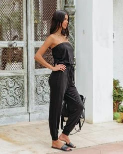 An essential for summer, the Chill Summer Strapless Pocketed Jumpsuit in black features side pockets.