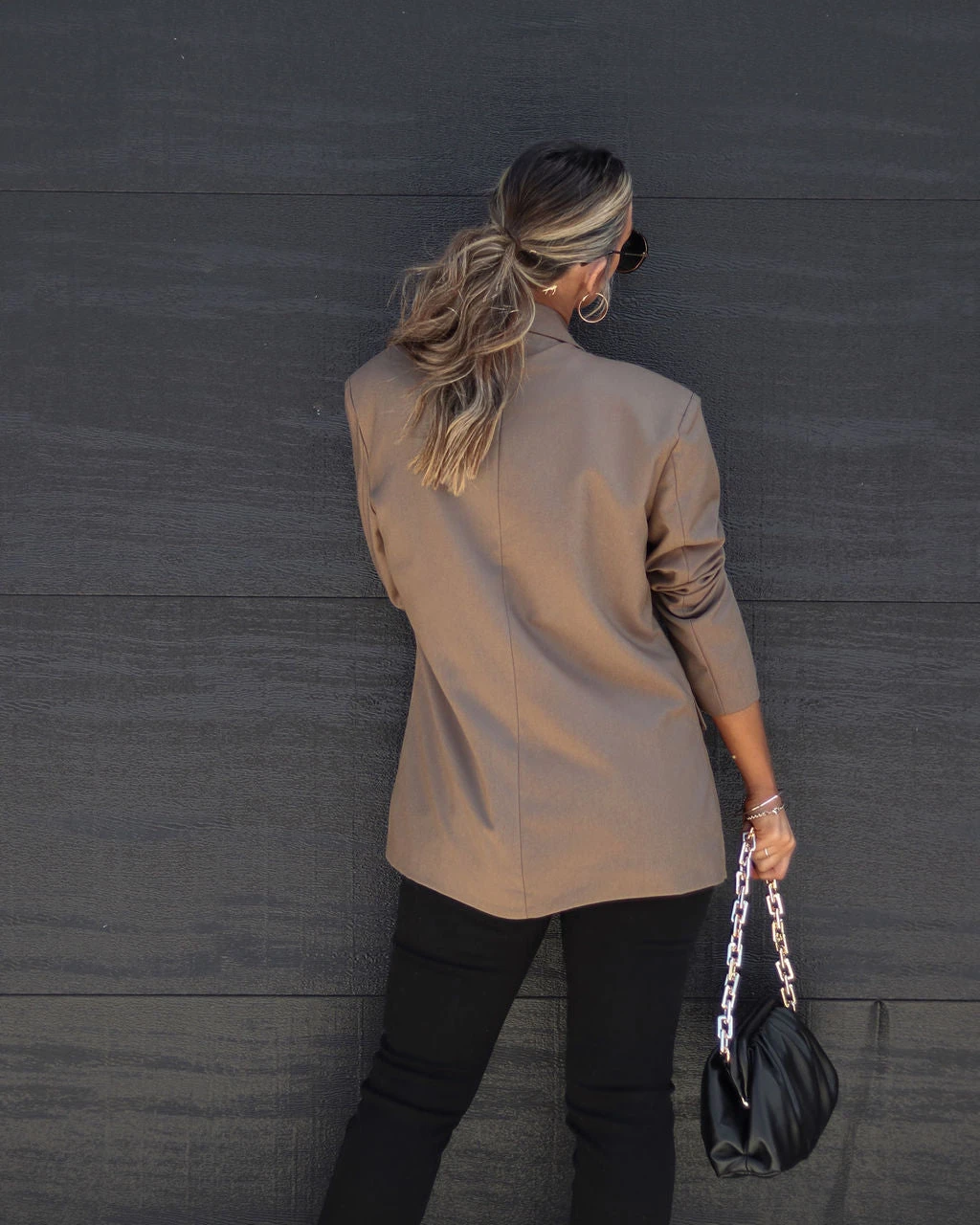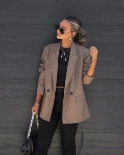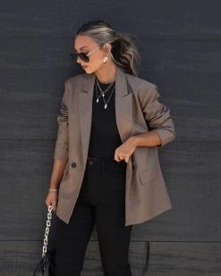 Every Fall closet needs the Daily Mail Pocketed Blazer in mocha that features a notched collar.