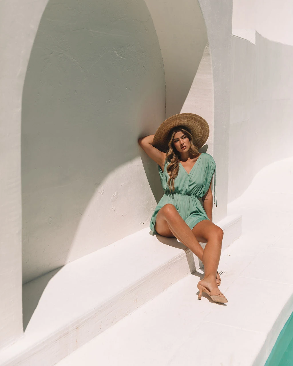 - Size M: Length measures 29.5” from shoulder to hem with a 2.5” inseam 34” bust and 26” waist  Â