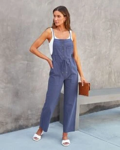 Wander around in the Fresno Pocketed Jumpsuit in navy that features a fitted waist.  Â