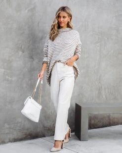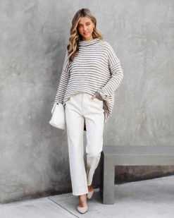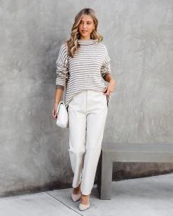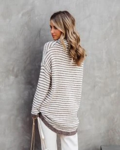 Comfy meets cool in the Adoring You Striped Turtleneck Sweater in mocha beige that features a turtle neckline.