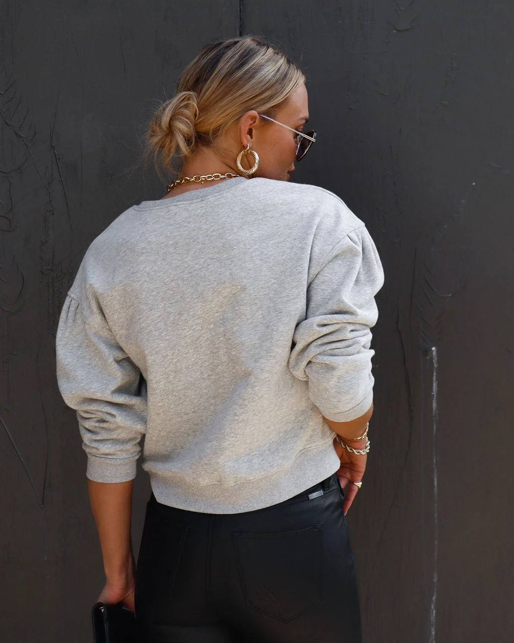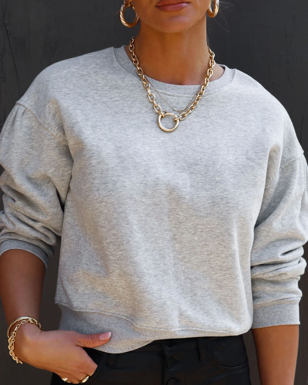Comfy meets cool in the Casually Perfect Cotton Sweatshirt in heather grey that features a relaxed fit.