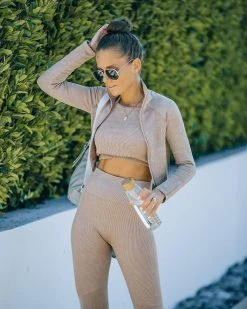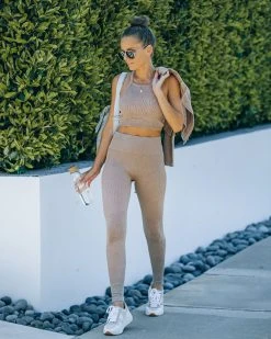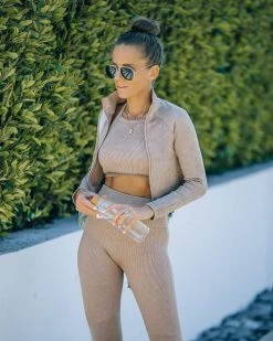 Spend Saturday’s sweating it out in this adorable workout set! Our Sculpt Ribbed Knit Crop Tank looks fire paired with the matching leggings, jacket, and a pair of sneaks. This dusty mauve ribbed tank has a high neckline. Styled with the Chloe Mini Necklace, Shield Pendant Necklace, Kenzie Backpack, Sculpt Ribbed Knit Seamless Legging, Sculpt Ribbed Knit Zip Up Crop Jacket, and Dart Running Sole Sneaker.