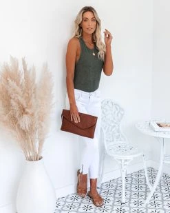 Our Cactus Washed Cotton Racerback Tank is an essential basic with an elevated feel. The stretchy knit base is thick and has a premium fitted style in a washed olive hue. Try it out with distressed denim shorts and layered necklaces! Styled with the Perfect Hoop Earrings, Knox Necklace, The Buddha Wheel Necklace, Classic Zip Skinny, Brianne Twisted Faux Leather Sandal and the Stella Crossbody Envelope Zip Clutch.
