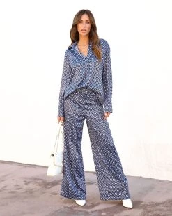 Comfy meets cute in the Imelda Satin Print Button Down Top in blue that features a collar.