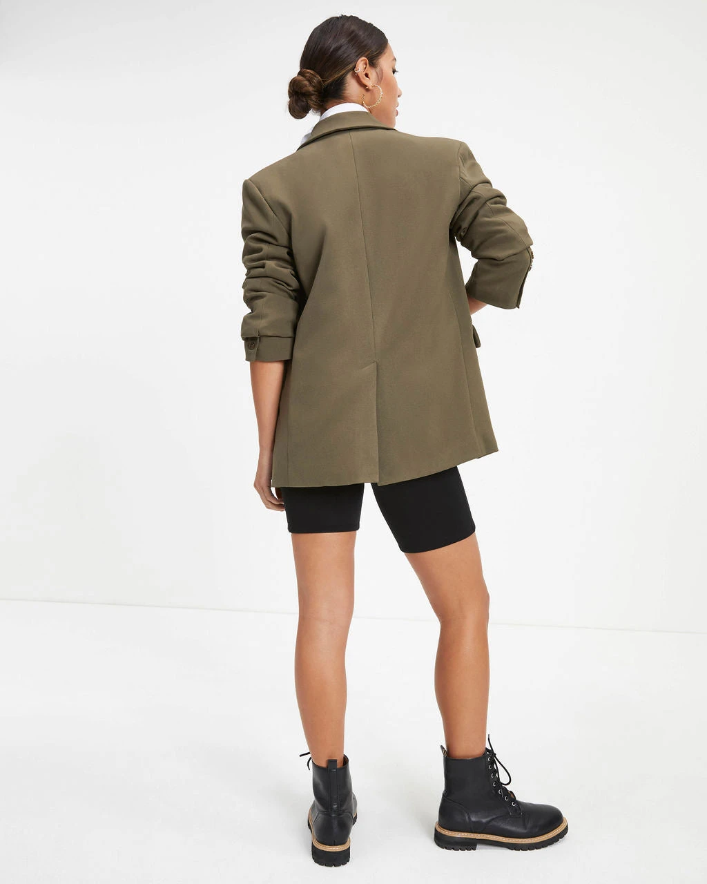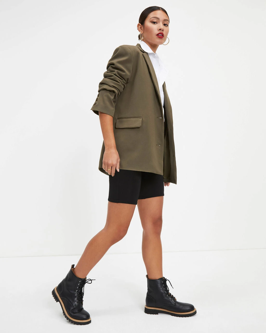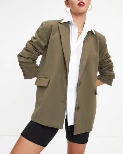 Boss babes will love the She Knows It All Pocketed Blazer in olive that features a lower back vent.