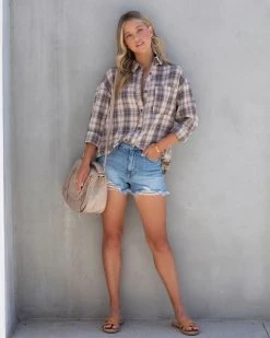 Celebrate the weekend in the Friday Night Lights Plaid Button Down Top in navy multi that features a collar.