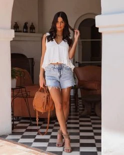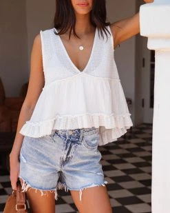 Celebrate warmer weather in the Adella Waffle Knit Babydoll Tank in ivory that features a v-neckline and a babydoll fit.