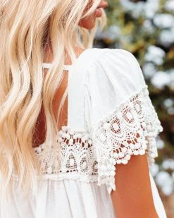 //VICI Exclusive//Best Seller// New Color// We are swooning for this cream top and its boho vibe! Our Karina Cotton Crochet Top is lightweight in cotton with a flowy fit and crochet lace details through the neckline, sleeves and hemline. The square neck is accented with sleeves that are slit for breathable wear. Styled with the Arwen Beaded Teardrop Earrings, 5 Disc Choker, Chloe Mini Necklace, Gaia Coin Necklace, Leela Clutch, Nicolas High Rise Cuffed Denim Shorts, and Leila Block Heeled Sandal.