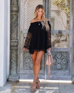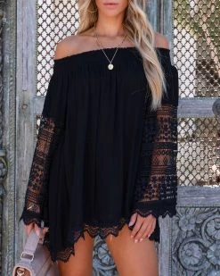 Exquisite crochet detailing defines the La Vie Bohème Off The Shoulder Crochet Tunic! Its smocked off the shoulder neckline creates beautiful drape and movement.