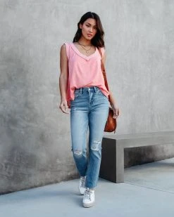- Size M: Length measures 22″ from shoulder to hem with a 36” bust