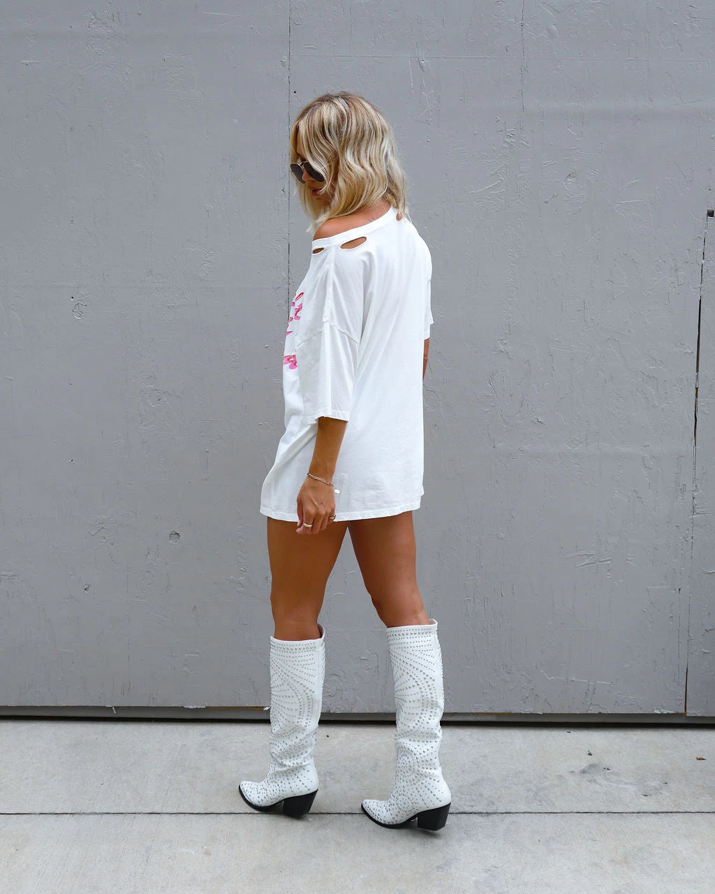 - Size XS: Length measures 16” from shoulder to hem with a 32” bust