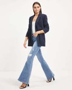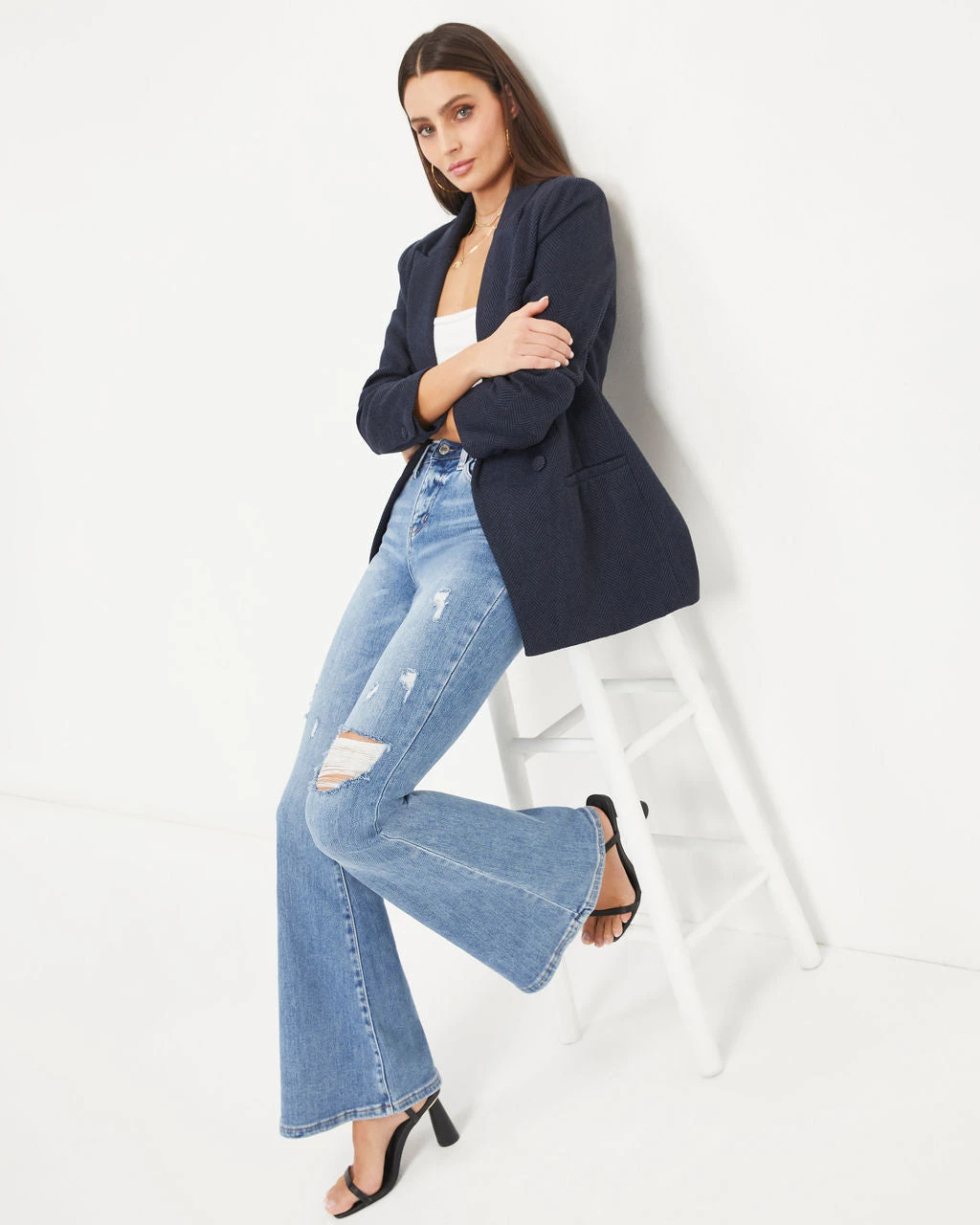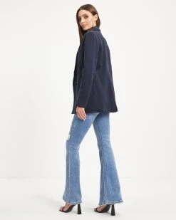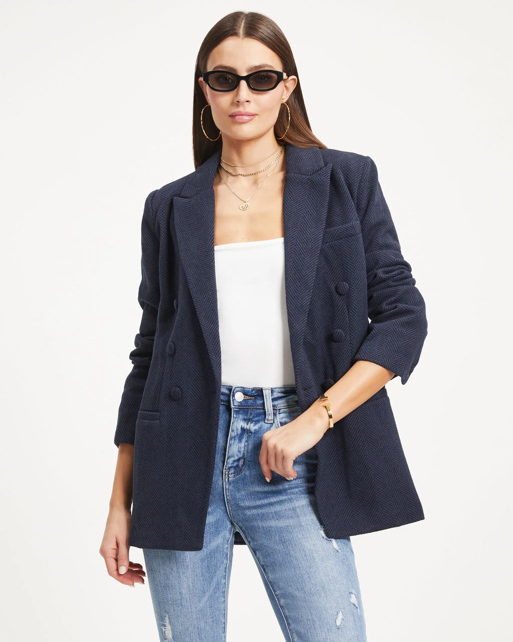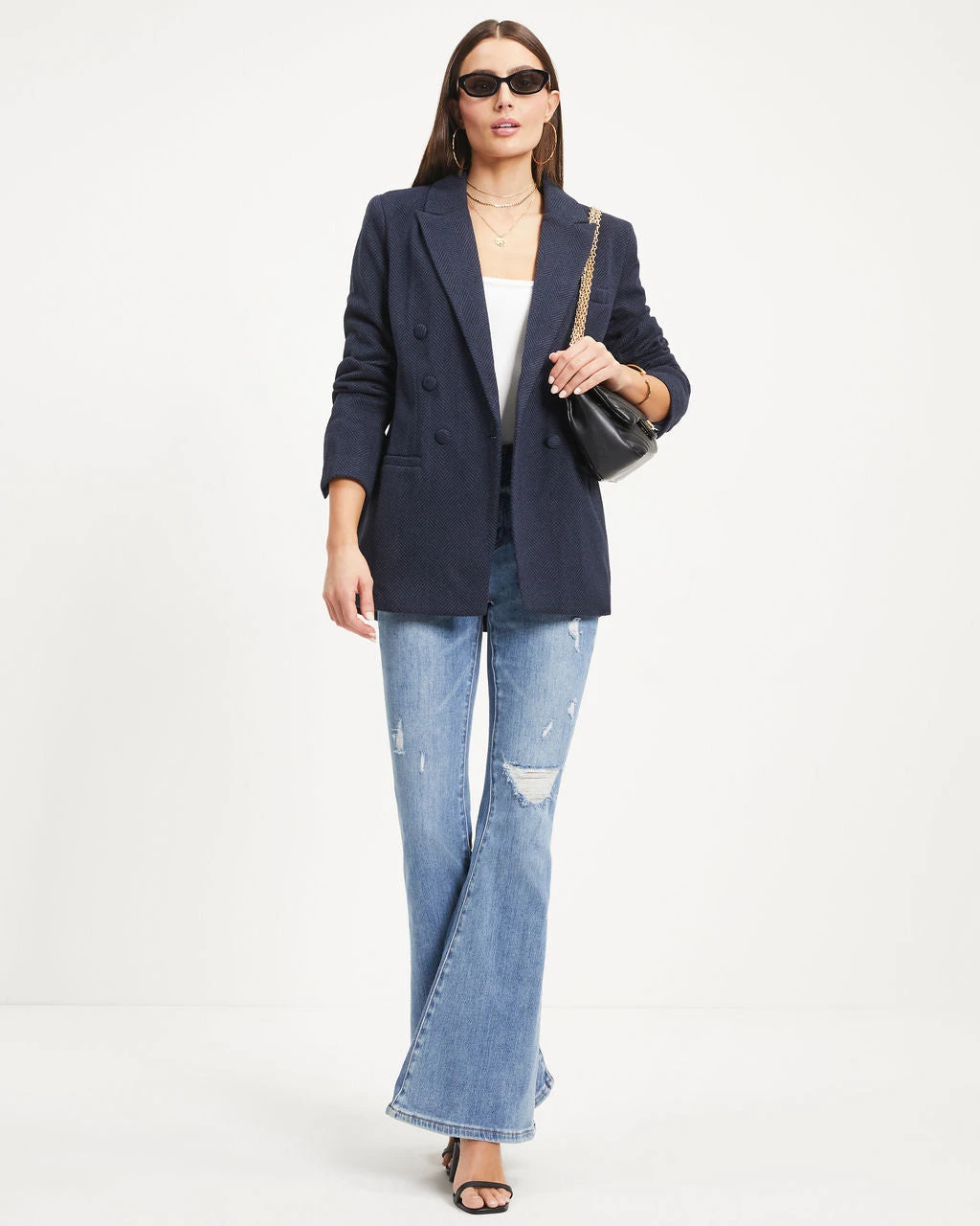 Keep it classic in the Downtown Adventures Pocketed Blazer in navy that features a collar.