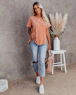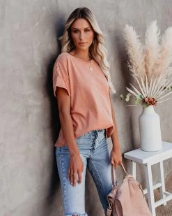 Our Esther Cotton Mineral Wash Tee is a step up from your basic tee style! This rose-hued tee has a unique mineral wash on a stretchy fabrication. From the crew neckline, short sleeves and classic fit, you’ll find yourself reaching for it all the time!
