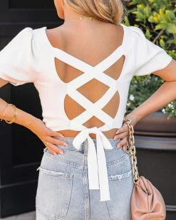 Let the sunshine in in our Thalie Knit Crop Top in white that features a square neckline.