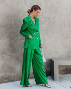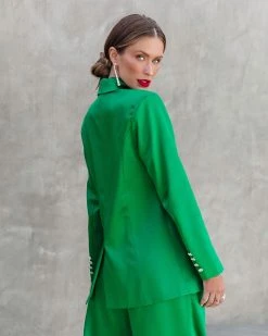 Boss babes will love the Sensational Queen Satin Embellished Pocketed Blazer in green that features padded shoulders.