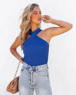 Designed for nights out, the Among The Stars Halter Knit Tank in royal blue features a ribbed knit fabrication.