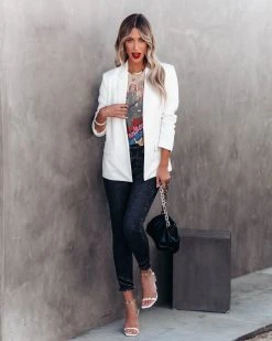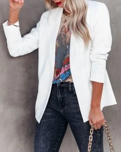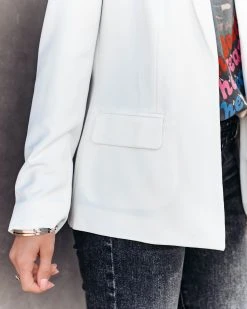 Go for a sophisticated look in our Boss Up Pocketed Blazer! This off white blazer features shoulder pads. Designed with an open front and a notched collar. Finished with long sleeves. Styled with the Perfect Hoop Earrings, Anywhere Herringbone Necklace, Chloe Mini Necklace, Compass Coin Necklace, Simple Bangle Bracelet, The Beatles Cotton Band Tee, Diane High Rise Frayed Ankle Skinny, Olga Studded Square Toe Heel, and Chic Crossbody Chain Pouch Bag.