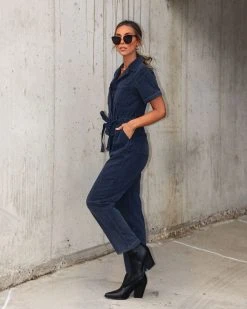 Elevate your look in the Nevada Cotton Blend Pocketed Jumpsuit in black that features a notched collar.