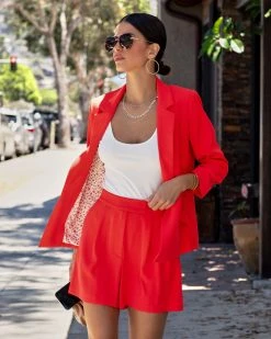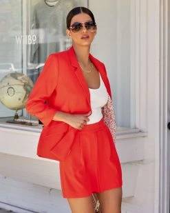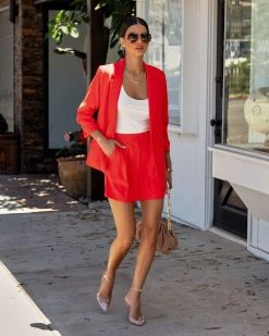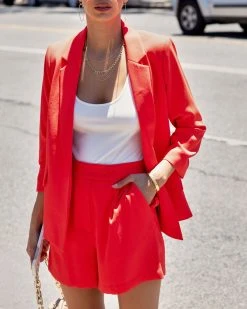 Embrace your boss babe side in the She Means Business Pocketed Blazer in coral red that features a notched collar.