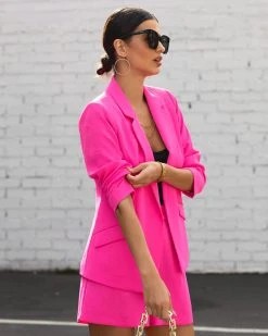 Embrace your boss babe side in the She Means Business Pocketed Blazer in hot pink that features a notched collar.