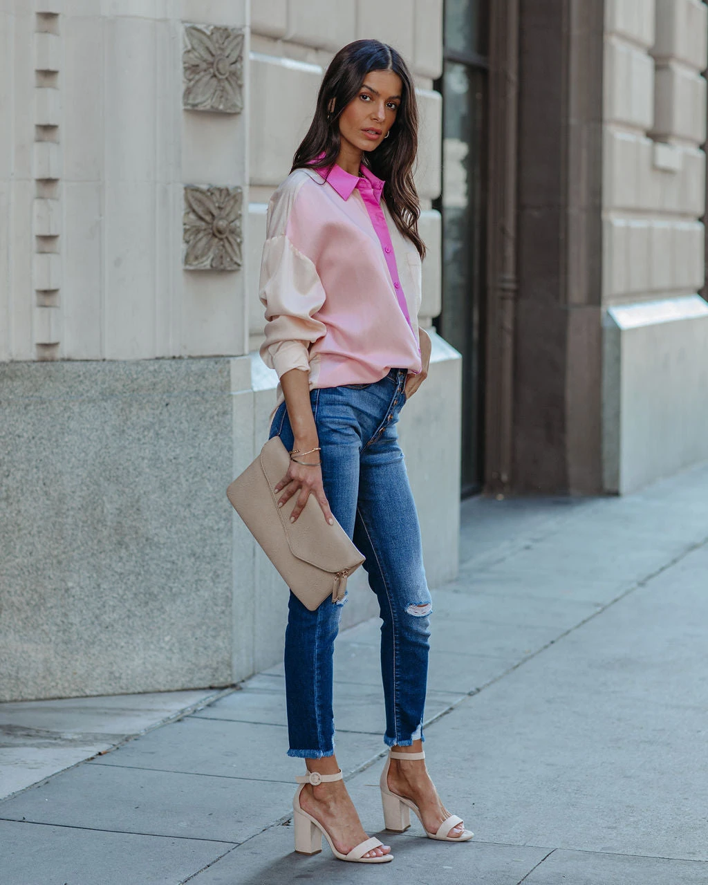 Styled with: Mercury Hoops, Skipper Necklace, Stella Clutch, Tilley Denim, and Formal Heel.