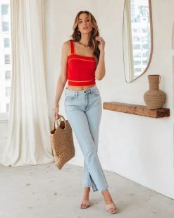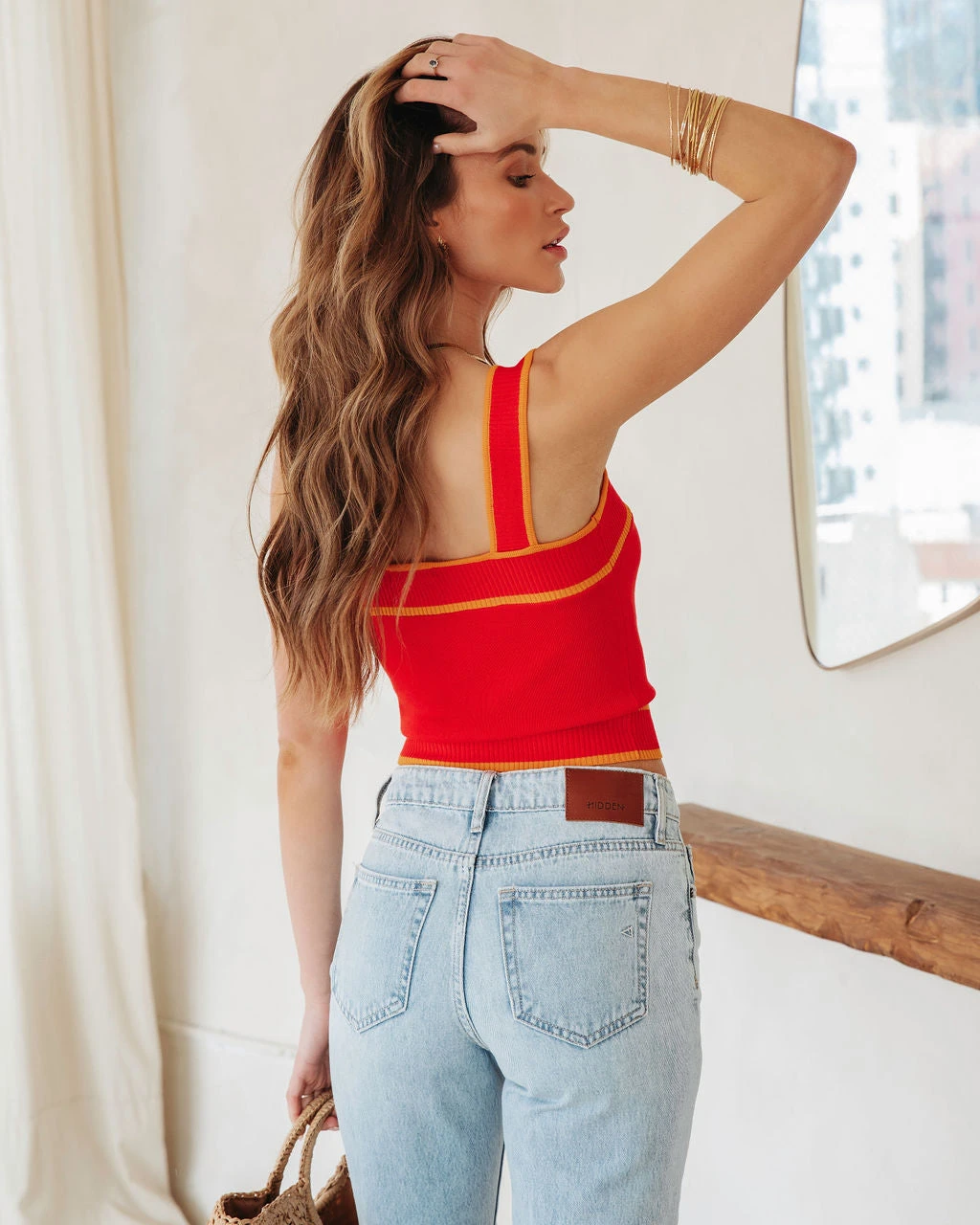 Get ready for warmer weather in the Porch Knit Crop Tank in orange and tangerine that features a square neckline. Â