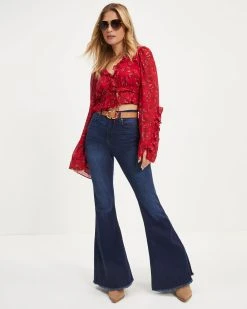 We’re loving the retro vibes of the Astrid High Rise Stretch Flare Jeans in dark wash that feature a wide leg.