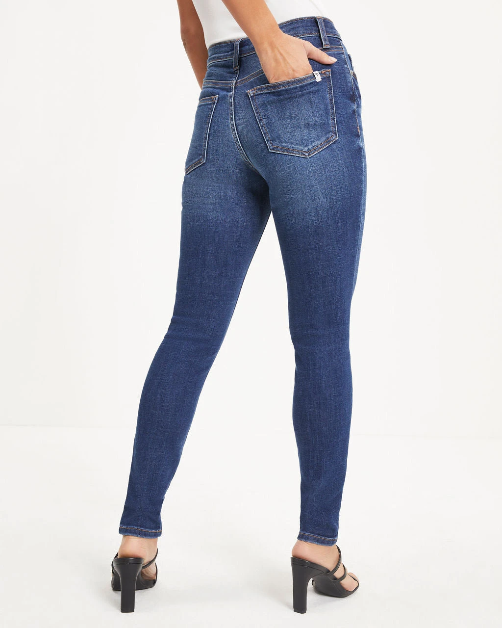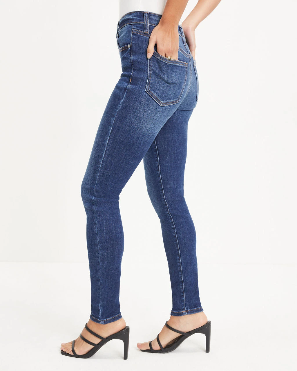 Flattering meets fitted in the Kiana Mid Rise Stretch Slim Straight Jeans in medium dark that feature a straight leg.